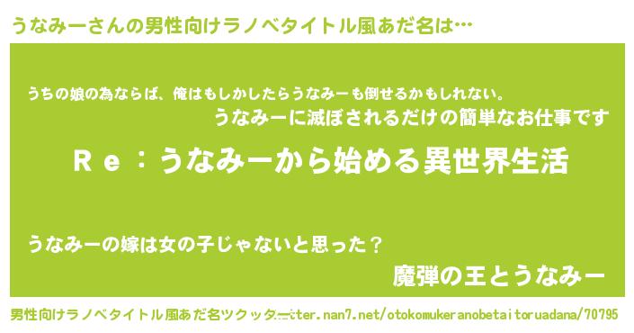 | ヒーロー風カッコイイあだ名 | 『究極戦士ウナミー』『仮面ウナダー』 |