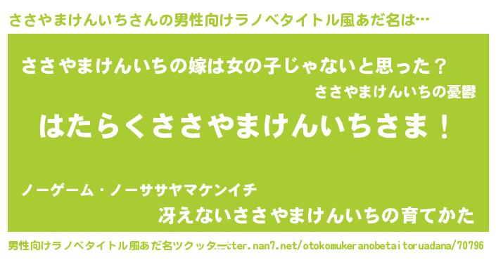 | 意味不明あだ名 | 『とにかく怪しいささやまけんいち』 |