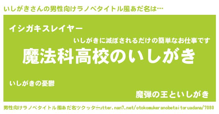 | 肩書あだ名 | 『いしがき閣下』『いしがき上級大将』 |