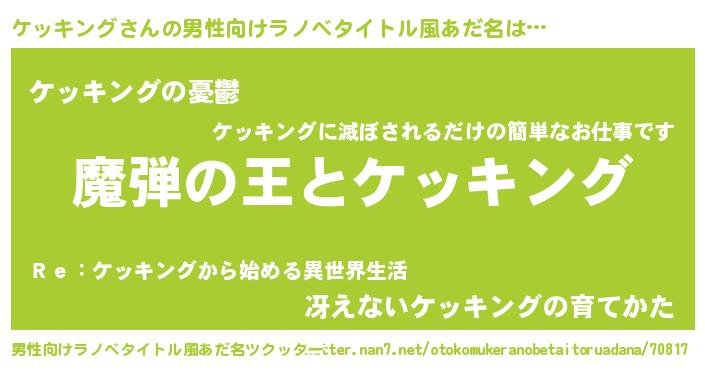 | 意味不明あだ名 | 『住所不定無職ケッキング(79歳)』 |