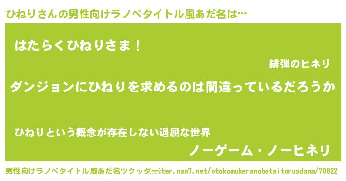 | 胡散臭い通販商品みたいなあだ名 | 『信頼と実績のペンダント…その名も「ひねり」』 |
