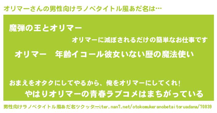 | 女子向けラノベタイトル風あだ名 | 『オリマーの玉の輿計画!』 |