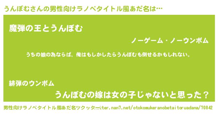 | 女子向けラノベタイトル風あだ名 | 『うんぼむの婚約者』 |