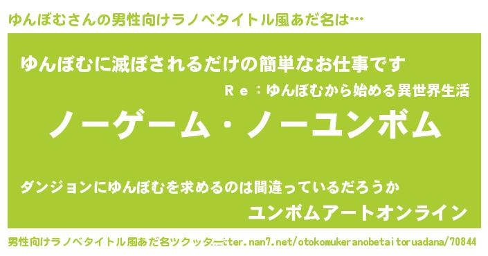 | 伝説のあだ名 | 『魔王と互角に渡り合う錬金術士ゆんぼむ』 |