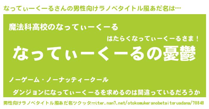 | 女子向けラノベタイトル風あだ名 | 『なってぃーくーる姫と円卓の騎士』 |