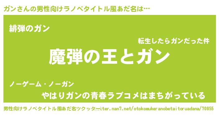 | 女子向けラノベタイトル風あだ名 | 『乙女ゲームの破滅フラグしかない悪役ガンに転生してしまった…』 |