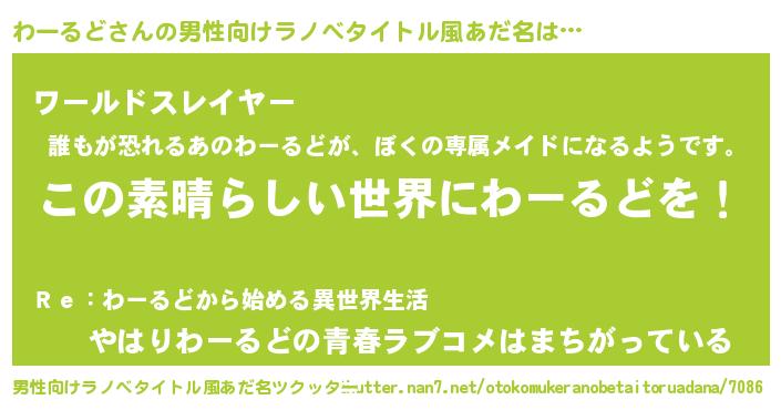 | ヒーロー風カッコイイあだ名 | 『仮面ワーダー』『ウルトラわーるどマン』 |