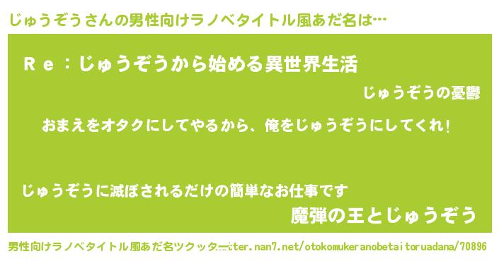 | 女子向けラノベタイトル風あだ名 | 『じゅうぞう夫妻のなれそめ』 |