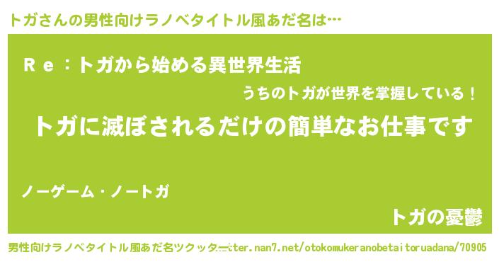 | 女子向けラノベタイトル風あだ名 | 『横柄トガと宰相陛下』『闇のトガ』 |