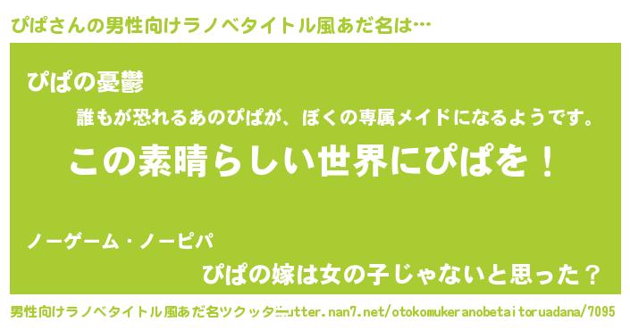 | 意味不明あだ名 | 『住所不定無職ぴぱ(10歳)』『ペロリンぴぱ』 |