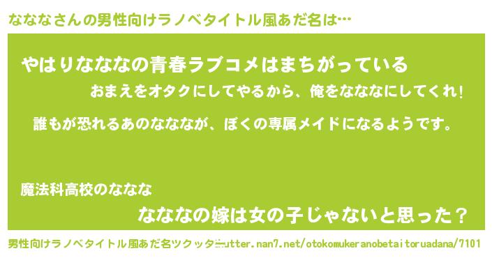 | ファンタジー風あだ名 | 『ナナディッシュ』『エターナルナナナー』 |