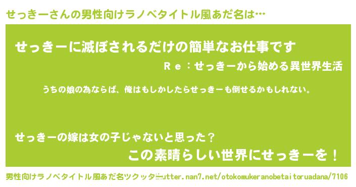 | ファンタジー風あだ名 | 『エターナルセッキーー』『ゼセットゥ』 |