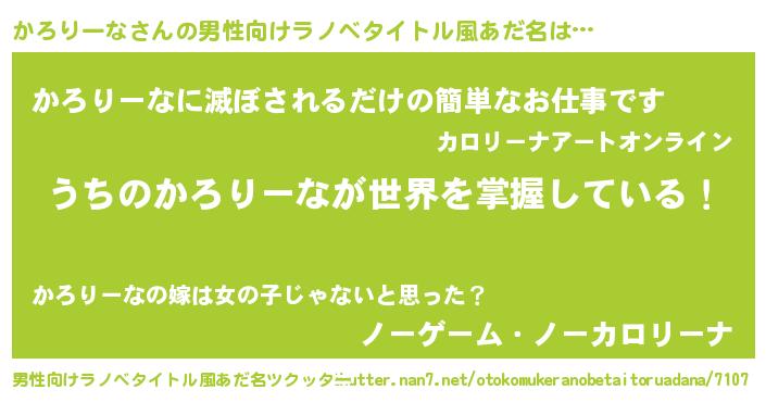 | 女子向けラノベタイトル風あだ名 | 『男装かろりーなの憂鬱な任務』 |