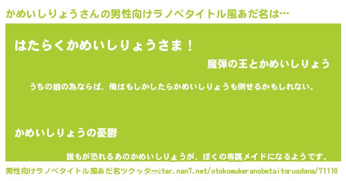 | 意味不明あだ名 | 『かめいしりょうフォーエバー』 |