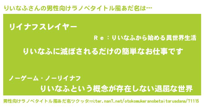 | ヒーロー風カッコイイあだ名 | 『ネオリイナフ』『超時空戦士リイナフ』 |
