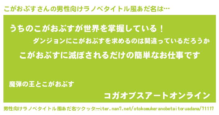 | 意味不明あだ名 | 『ペロリンこがおぶす』『自称こがおぶす』 |