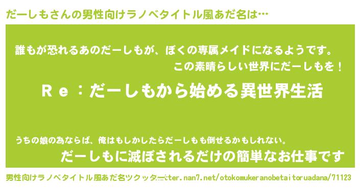 | 意味不明あだ名 | 『自称だーしも』『永久保存だーしも』 |