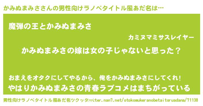 | 女子向けラノベタイトル風あだ名 | 『かみぬまみさ様がみてる』 |