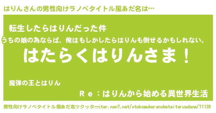 | 意味不明あだ名 | 『めかぶ科はりん属』『自称はりん』 |