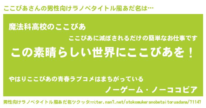 | 意味不明あだ名 | 『住所不定無職ここびあ(59歳)』 |