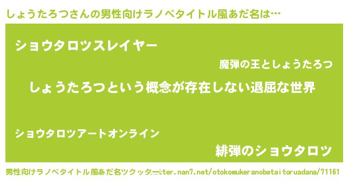 | 胡散臭い通販商品みたいなあだ名 | 『絶対に幸福をもたらす水素水…その名も「しょうたろつ」』 |