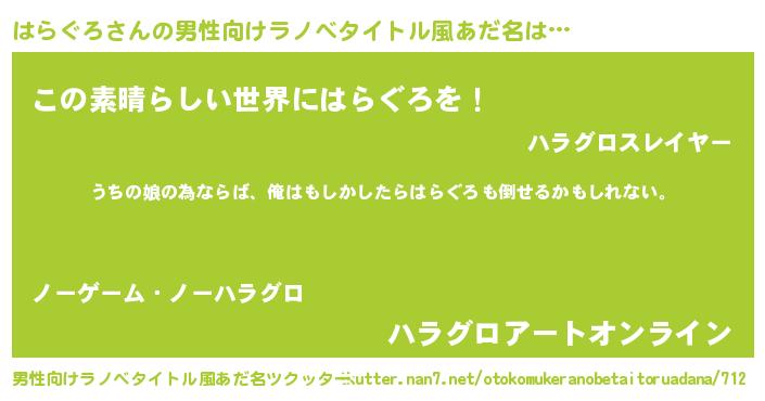 | ヒーロー風カッコイイあだ名 | 『ウルトラはらぐろマン』『仮面ハラダー』 |