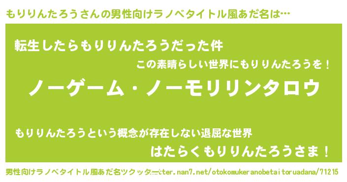 | 女子向けラノベタイトル風あだ名 | 『死神もりりんたろうの再婚』 |