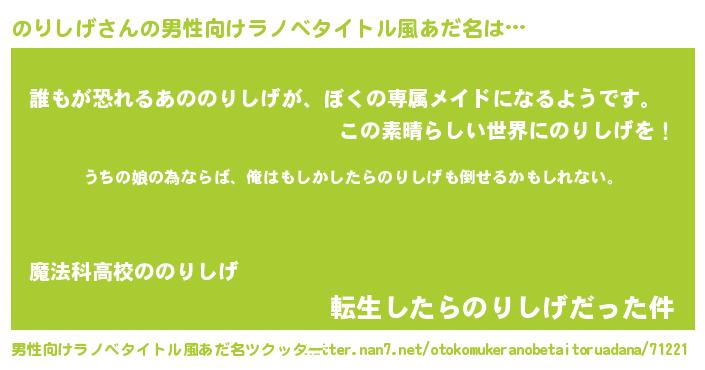 のりしげさんの男性向けラノベタイトル風あだ名をツクッター!