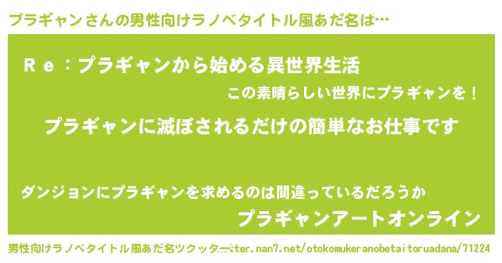 | ヒーロー風カッコイイあだ名 | 『最強戦士プラギャン』『仮面プラダー』 |