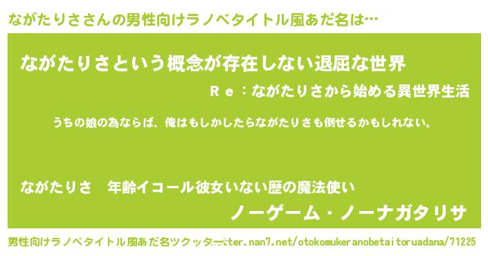| 女子向けラノベタイトル風あだ名 | 『ながたりさ伯爵の花嫁』 |