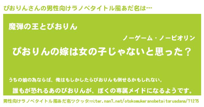 | 女子向けラノベタイトル風あだ名 | 『ぴおりん様がみてる』 |