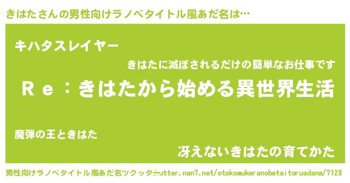 | 意味不明あだ名 | 『自称きはた』『しいたけ科きはた属』 |