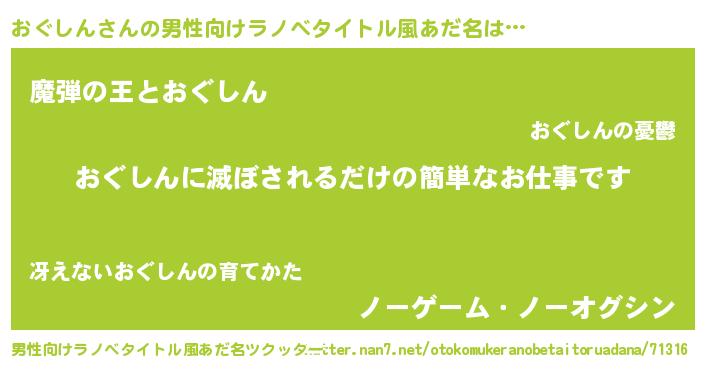 | 意味不明あだ名 | 『住所不定無職おぐしん(89歳)』 |