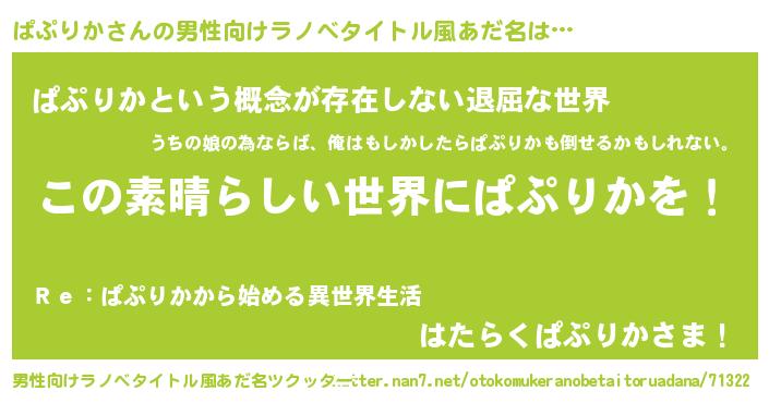 | 伝説のあだ名 | 『古文書に記された勇者ぱぷりか』 |