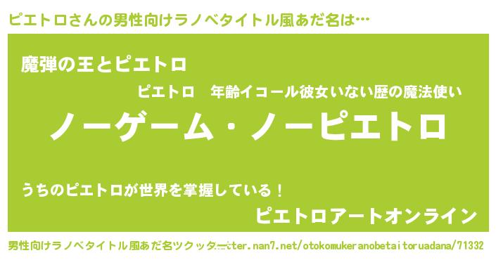 | 女子向けラノベタイトル風あだ名 | 『死神ピエトロの再婚』 |