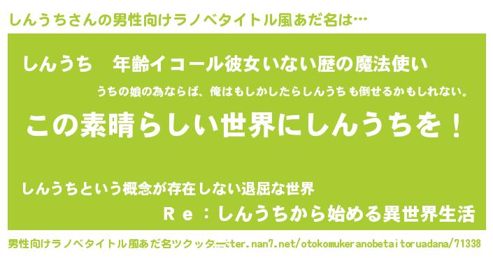 | 意味不明あだ名 | 『住所不定無職しんうち(47歳)』 |