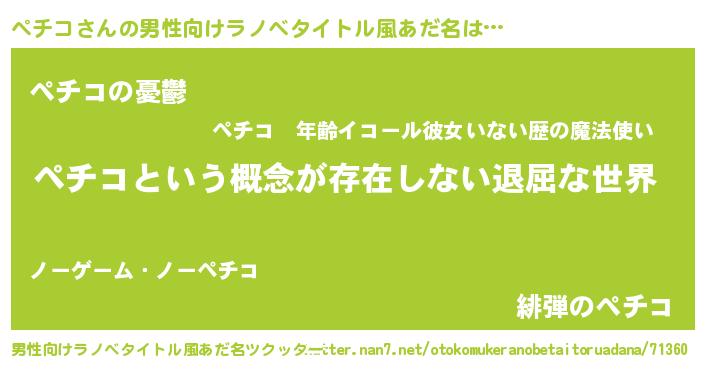 | ヘコむあだ名 | 『ペチコ(爆)』『ペチにゅー』 |