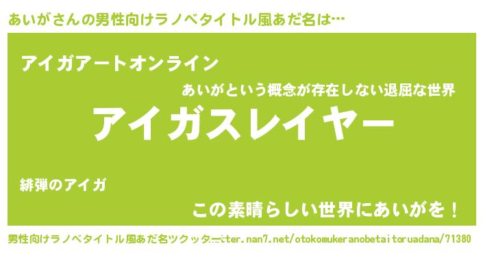 | 胡散臭い通販商品みたいなあだ名 | 『必ず成功するブレスレット…その名も「あいが」』 |