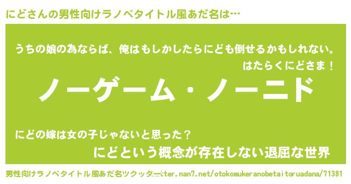 | 女子向けラノベタイトル風あだ名 | 『死神にどの再婚』『にど伯爵の花嫁』 |