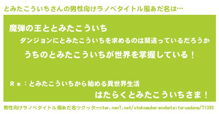 | 意味不明あだ名 | 『住所不定無職とみたこういち(3歳)』 |