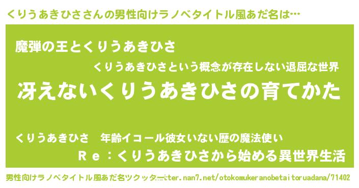 | 欧米人風あだ名 | 『くりうあきひさ・ステッグマイヤー』 |