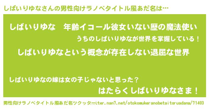 | 女子向けラノベタイトル風あだ名 | 『しばいりゆなの契約王妃』 |