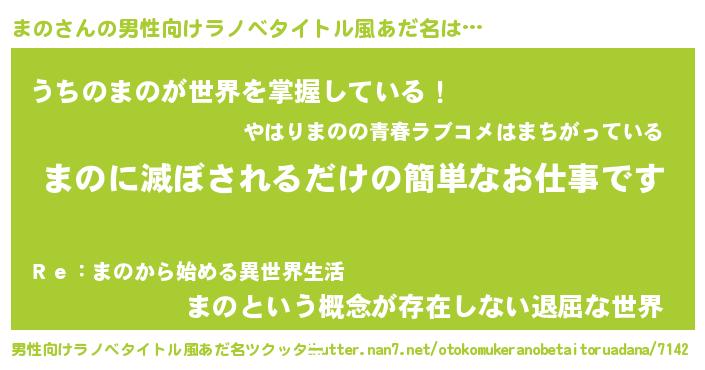 まのさんの男性向けラノベタイトル風あだ名をツクッター!