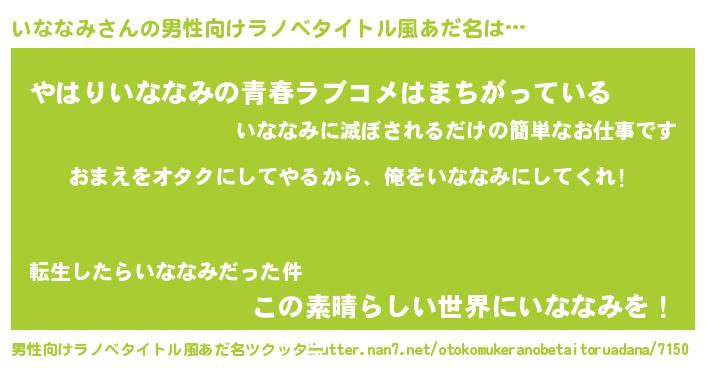 | 女子向けラノベタイトル風あだ名 | 『いななみ恋絵巻』『いななみ伯爵の花嫁』 |