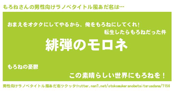 | 女子向けラノベタイトル風あだ名 | 『シンデレラもろね家の靴箱館』 |