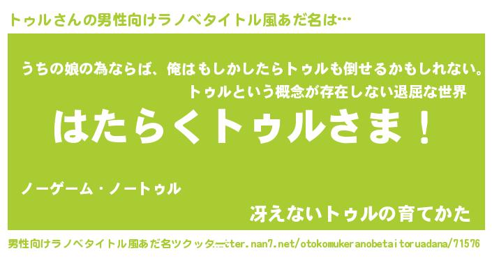 | ヒーロー風カッコイイあだ名 | 『ウルトラトゥルマン』『ネオトゥル』 |
