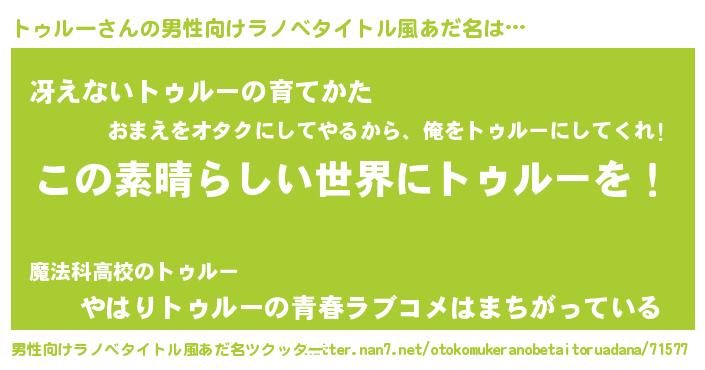 | 意味不明あだ名 | 『住所不定無職トゥルー(74歳)』 |