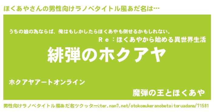 | 女子向けラノベタイトル風あだ名 | 『シンデレラほくあや家の靴箱館』 |