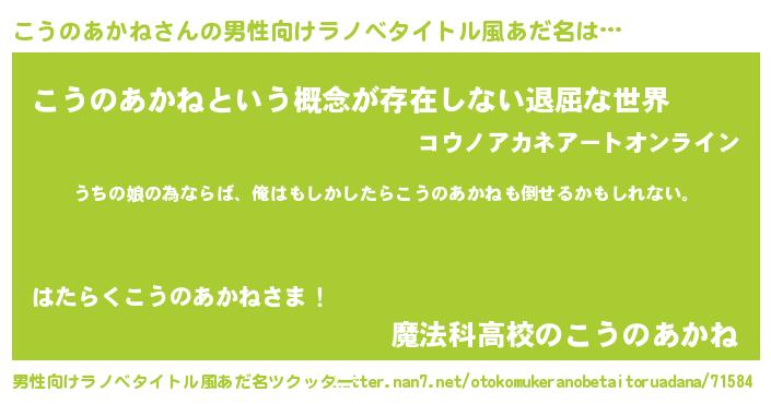 | 女子向けラノベタイトル風あだ名 | 『こうのあかねの婚約者』 |