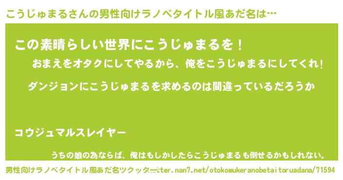 | 女子向けラノベタイトル風あだ名 | 『こうじゅまるは平凡を望む』 |